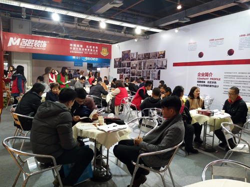 作為中國裝飾裝修行業(yè)的領(lǐng)軍企業(yè),本屆展會再次榮耀展出,并火爆全場!“大紅色”一直以來是名匠的主打色。紅色代表著熱情、喜悅和奮揚,一如名匠家人們?nèi)缋前愕钠床?。名匠醒目的紅色門頭,高高掛起的錦旗迎來了大批業(yè)主前來咨詢。連續(xù)三天,名匠裝飾展位人氣依舊一直處于爆棚狀態(tài),現(xiàn)場賓客人流如織,門庭若市。直至活動收尾那刻,業(yè)主前來咨詢的熱情仍舊不減,名匠人也沒有絲毫松懈,更加用心為客戶服務(wù)。